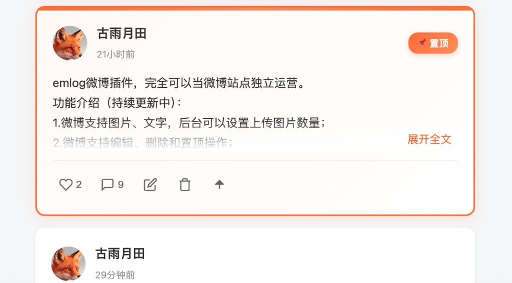 9.支持将微博插件设置成网站首页,后续我也会基于作为主页来更新这个应用,将它做成独立于emlog的功能,让对微博有兴趣的用户独立运营这个插件;